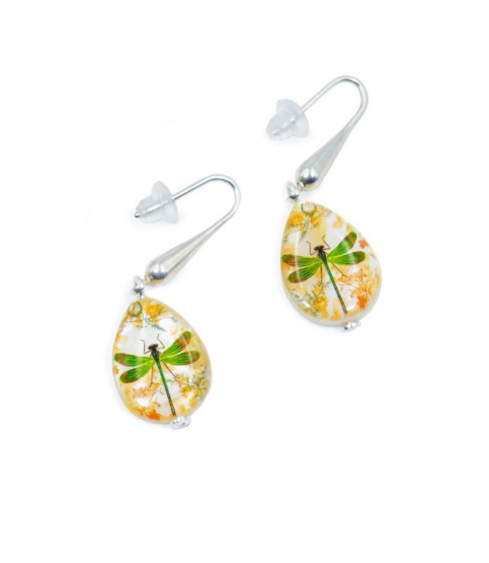 Pendiente nácar Lágrima, Libélula verde
