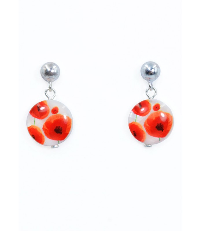 Pendientes nácar redondos, Amapola