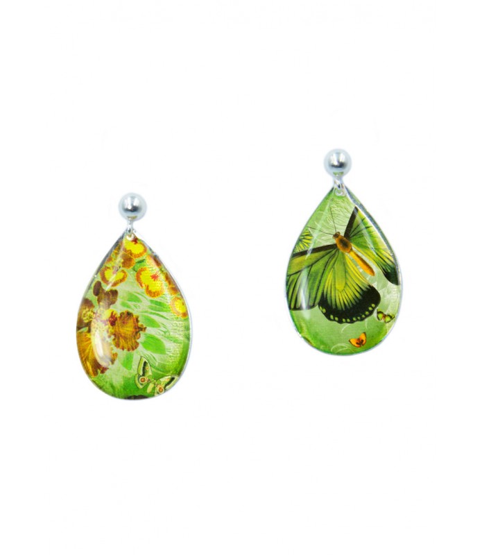 Pendiente de bola y medalla ilustrada y esmaltada.