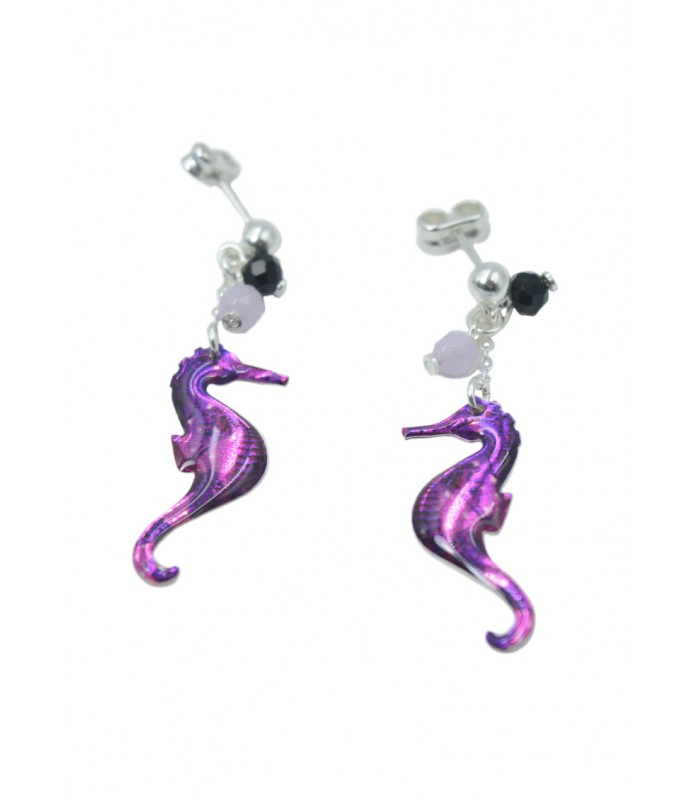 Pendiente de bola y medalla con forma de caballito de mar, ilustrada y esmaltada.