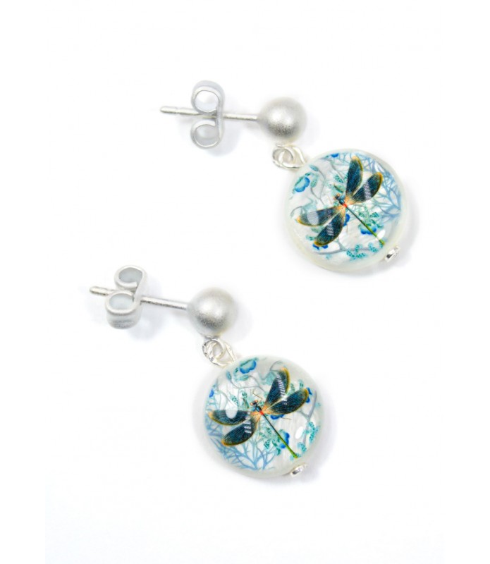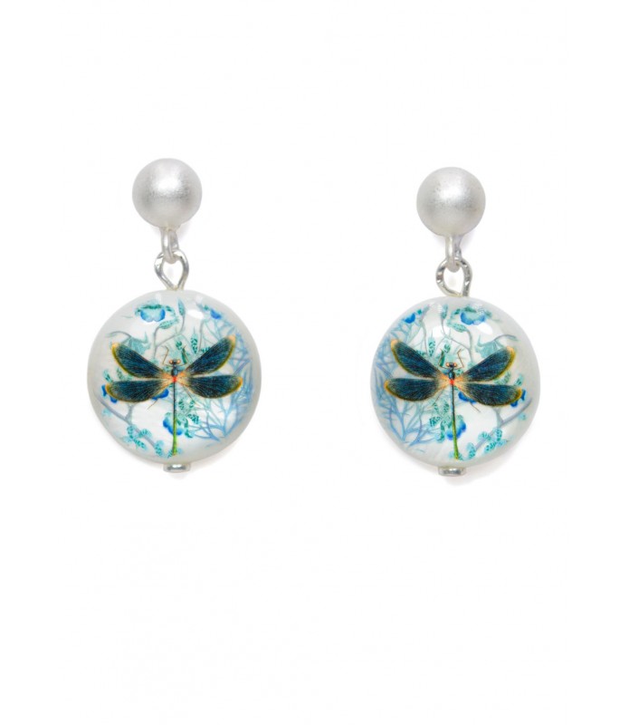 Pendiente nácar redondo, Libélula azul